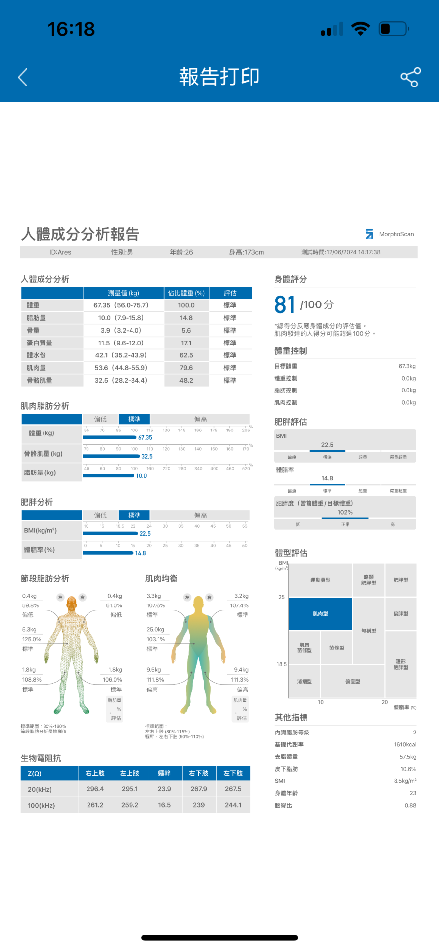 DF-BIA 雙頻生物電阻分析技術,助你了解身體各部份體組成。